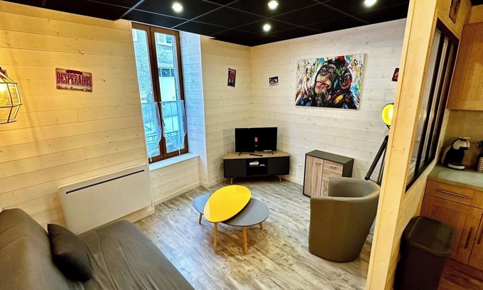 Cosy Apartment in the Heart of La Bourboule Up to 6 PeoplePerfect for a family stay, as a couple or with friends, this charming apartment welcomes you in a calm and central environment, just steps away from shops, restaurants and thermal baths 1 bedroom 1 sleeping area 6 sleeping spaces• 1 double bed 1 bunk bed 1 double sofa bed An ideal configuration for small groups or families Practical bathroom• Comfortable shower, ideal after a day of skiing or hiking Fully equipped American kitchen• Refrigerator, oven, microwave• Dishwasher, coffee maker washing machine Everything you need to cook just like at home Equipment Comfort• WiFi television Netflix Wii console Dining table, iron, hair dryer, hangers• Cleaning products provided Ideal Location• 200 m from the city center 8 km from the ski slopes of Mont-Dore Sancy 10 min walk from Mont-Dore Golf Course 2 km from Auchan supermarket 45 km from Clermont-Ferrand train station airport A practical, quiet well-equipped accommodationEnjoy a peaceful stay in a pleasant setting, between nature, relaxation and leisure. Whether you are here for the thermal baths, hiking or snow, everything is gathered for successful holidays in Puy-de-Dôme!