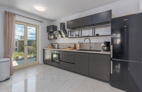 Beautiful, newly built family friendly villa with private pool for 6-8 people in Labinci. Ideal location for a peaceful and carefree holiday in Istria. The first beach in Poreč is located only 7 km away from the villa. The house spreads over two floors ( 144 m2). The ground floor has a kitchen, living room and one bedroom with a bathroom. On the first floor there are two bedrooms with balcony overlooking the sea in the distance. Each bedroom has its own bathroom. The house is fully air-conditioned. Outside the property you can find a beautifully landscaped and spacious garden with a barbecue, terrace and private pool (30 m2) which will delight its guests. Parking place is located inside the yard. A modern and comfortable interior with details of Istrian architecture will satisfy the most demanding guests. Pets and parties are not allowed..