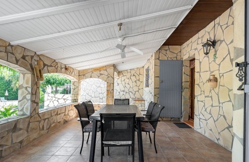 There is a swimming pool, from where you can enjoy natural views while swimming. Featuring a garden and roofed terrace, the villa offers all comforts for a relaxing break. The air-conditioned villa features a kitchen apart from a living room and dining room. Washing machine, fireplace, garage and plancha grill are other available amenities. Garage and carport is on-site.