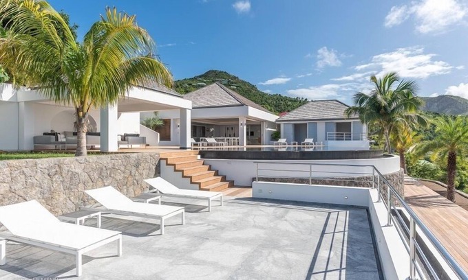 Best-rates for the Barriere des Quatres Vents villa starts from $5,441 per night with includes TV, Guest Services, Breakfast, Kitchen, Air Conditioner, Pool, Wellness Facilities, Child Friendly, Parking, View, Ocean View, Balcony/Terrace, Barbecue/Outdoor Cooking, Internet, Laundry, Private Pool, Oceanfront, Security/Safety, Sports/Activities, Bedding/Linens, Entertainment, Hot Tub with all other amenities. Perfect for Weddings is committed to ensuring every guest experiences a comfortable and extraordinary stay, whether planning a romantic getaway, a honeymoon, a pet-friendly stay, or celebrating with the entire wedding party.
