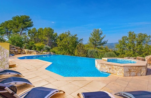 Located in the picturesque countryside of the French Riviera, Villa Colombes is set on spacious grounds with stunning views from the private infinity pool. This light and airy 4 bedroom property is well equipped with stylish furnishings and plenty of areas to socialise, including a lovely games room for some friendly competition. You'll be just 5 minutes' drive from the town of Draguignan with a bustling town centre and an endless choice of restaurants, cafes, and shops to discover. Nearby attractions from the villa include Les Grottes de Villecroze, a 20 minute drive away, and the stunning Gorges du Verdon, about 45 minutes away. Wi-Fi and air conditioning/heating in all the bedrooms are included.