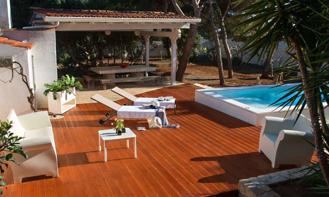 The villa located on the edge of the Punta del Pizzo Natural Park, is about 100 meters from the sea. It consists of 2 double bedrooms, and a triple bedroom. In addition there are two comfortable complete bathrooms with shower, kitchen with leaving area and a large outdoor veranda where you can dine in the evening. In the pine forest located at the back of the villa there is a large gazebo with a wood oven, complete with all the accessories for your summer barbecues, and a relaxing 6x3 meter swimming pool. The villa has air conditioning, grates on the doors to increase the level of security of the house, 4 parking spaces and an outdoor shower. On the lowered floor there is a small outbuilding with another 2 beds and a small bathroom, in case you would like to host some friends. A dream Villa a few steps from the Lido Pizzo beach.