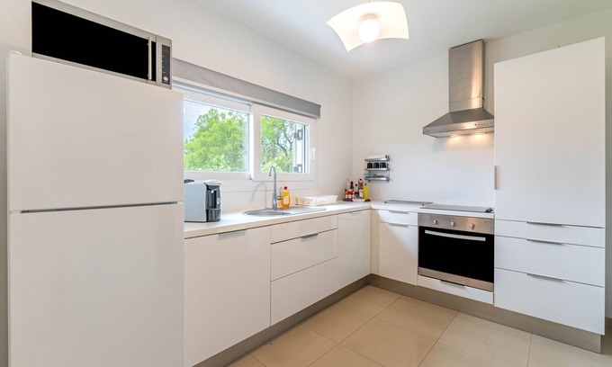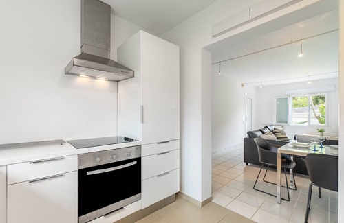 In Corfu, the villa Corfu Twins offers an excellent view of the mountain. The 85 m² property consists of a living room with a sofa bed for one person, a fully-equipped kitchen, 2 bedrooms and 1 bathroom and can therefore accommodate 5 people. Additional amenities include high-speed Wi-Fi (suitable for video calls), a smart TV with streaming services, air conditioning, a washing machine as well as a dryer. A baby cot is also available.