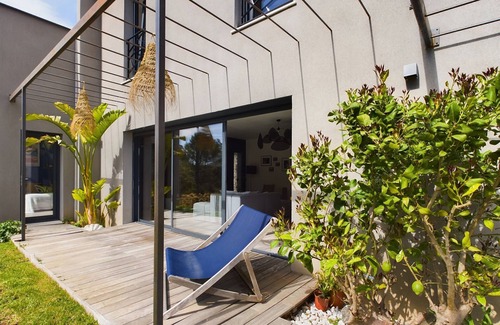 This carefully decorated contemporary villa offers a harmonious blend of modern style and comfort, the ground floor is composed of a large living room with a beautiful fully equipped open kitchen, a dining area and a lounge area and a bedroom with its own bathroom. Upstairs 2 bedrooms which share a bathroom with bathtub and shower.