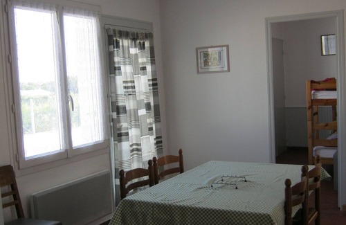 Single-storey house of 49m² has a kitchen (1 fridge - freezer, 1 gas cooker), a bathroom (shower, washing machine), WC, a living room, two bedrooms (1 140 cm bed and 2 single beds). stacked 90 cm). A courtyard with courtyard, barbecue and garden with swings for children. WIRELESS. Sleeps 4 people. Your electricity consumption in low and medium seasons is extra as well as the tourist tax. Holiday checks accepted. Optional services: End of stay cleaning (25€/hour), rental of sheets for blankets (bed 90 at 11€, bed 140 at 13€, bed 160 at 15€), rental of sheets for duvet (bed 90 at €15, bed 140 at €19, bed 160 at €21), towel rental €11, dishcloth rental €10. Unless stated, services such as cleaning, bed linen, towels etc. are not included in the price of this rental. If pets are allowed (information in the advertisement), charges may be applicable. Only equipment mentioned in this advertisement are present. Equipment not mentioned are not considered to be present.
