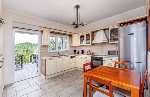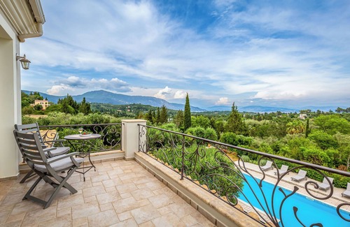 Suitable for up to 12 people, ideal for large families and groups of visitors. Three storey building that consists of 5 bedrooms, 3 bathrooms total, large pool with unobstructed views of Corfiot sea and nature, fully equipped kitchen, smart TV, WIFI, A/C.