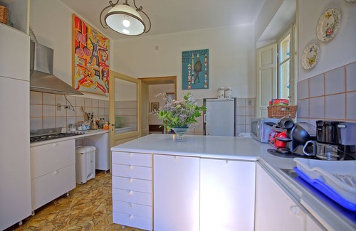 The house is elegantly and tastefully furnished, offering indoor and outdoor spaces equipped with all amenities to guarantee a relaxing and tranquil vacation. The vast grounds include a well-tended park with lawns and lush greenery; equipped outdoor areas with comfortable hammocks, lawn furniture, and a barbecue for dining al fresco; a beautiful pool with panoramic views; a terrace equipped with sun loungers and an outdoor shower; and a private tennis court. It is all for the exclusive use of villa guests—perfect for relaxing with family or friends, organizing outdoor barbecues and dinners, sunbathing by the pool, or unwinding in the shade of the hammocks.
