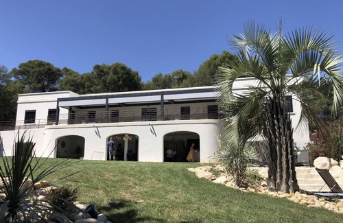 La villa des Cabres sits in the middle of the property. Architectural design, it will seduce you with its very recent luxury renovation, its furniture and its neat decoration, its many works of art and its large spaces for living, leisure and rest.