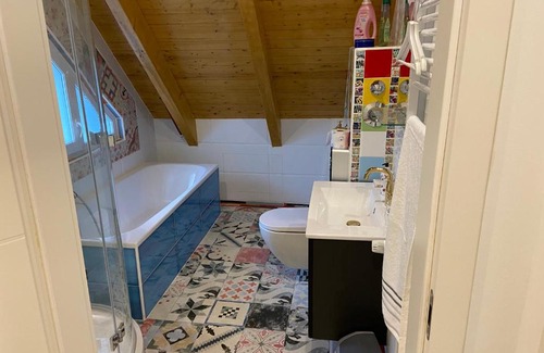 Featuring inner courtyard views, Villa DADA in Ahrensfelde provides accommodations, a garden, and a terrace. There's a private entrance at the apartment for the convenience of those who stay. The apartment features both free Wifi and free private parking. The units come with tiled floors and feature a fully equipped kitchen with a microwave, a dining area, a flat-screen TV with satellite channels, and a private bathroom with bath. A toaster, a fridge, and stovetop are also available, as well as a coffee machine and a kettle. At the apartment complex, each unit is fitted with bed linen and towels. Alexanderplatz Metro Station is 8.7 miles from the apartment, while Alexanderplatz is 8.8 miles from the property. Berlin Brandenburg Willy Brandt Airport is 21 miles away.