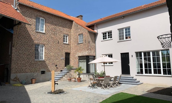 Welcome to De Daelhoeve, modern with a romantic touch. A beautiful, authentic villa. Every aspect of the house is stylish, comfortable, and very luxurious. The living room offers a beautiful view of the fields and forests and has a wood stove. There is air conditioning in the villa, as well as a sauna and swimming pool for your relaxation. There is also a fully equipped kitchen. There are 7 bedrooms, each with its own atmosphere. Furthermore, you have 3 bathrooms and 3 toilets at your disposal. For the little guest, there are also a crib and a highchair available. The large garden has a terrace, soccer field, table tennis, and ball court. From the hot tub, you can enjoy a great view. The farm is located in a beautiful landscape with beautiful fruit trees and nature reserves. Hasselt, Maastricht, Bilzen, Tongeren, and Liège are also nearby. In short, an ideal place for a relaxing vacation or weekend away.