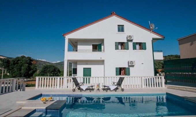 Villa Dagovi in Vrsine - Haus für 9 Personen is located in Vrsine. Villa Dagovi in Vrsine - Haus für 9 Personen provides accommodation, featuring Pool, TV, Private Pool, among other amenities. This Villa features Pool, TV, Private Pool, to make your stay a comfortable one.