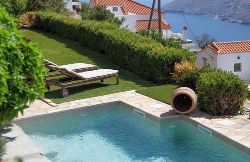 Located in historical Kochylou village, the villa "Dandolo" with its unique architectural design combines tradition with fine elegance for an unforgettable experience. The panoramic sea view and the private swimming pool will give you the chance to enjoy your vacations in one of the most aristocratic Cycladic islands, Andros. . Only 20 minutes from the centre of the island and right next to trail path No3, our place offers you the chance to plan the holidays you need.