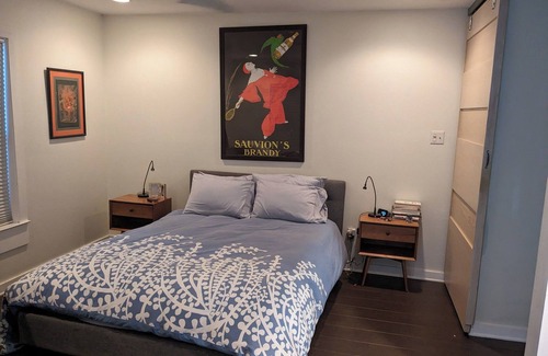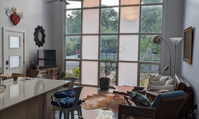 Your Austin getaway awaits in Austin at this gorgeous house with an industrial loft vibe with some Texas and Mediterranean flair. This tremendous property also features an open living room/kitchen/dining room with brilliant natural light, There are two cozy bedrooms with luxury mattresses and two spa level bathrooms with rain showerheads. An additional office space with a sofa bed provides fantastic flexibility for guests or extra space. Enjoy amenities like a gourmet kitchen, wash/dryer, TV with several streaming services, and more during your stay. Outdoors there is a fenced yard, two decks (one shady and one sunny), and located in a friendly neighborhood with easy access to University of Texas, ACC Highland, and downtown Austin. We look forward to welcoming you to Villa Dario!