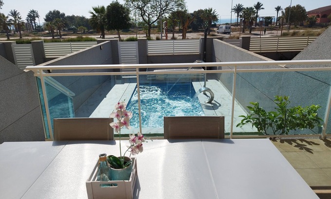 - Adosado en Primera Linea de Playa con Vistas Frontales y Piscina