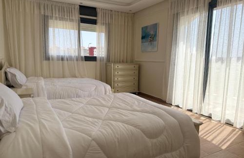 A recently renovated villa, Villa de luxe Océan Asilah offers accommodations in Asilah. This property offers access to a balcony, free private parking, and free Wifi. Plage de Asilah is 1.8 miles from the villa and Ibn Batouta Stadium is 26 miles away. Providing a terrace and garden views, the spacious villa includes 4 bedrooms, 2 living rooms, flat-screen TV, an equipped kitchen, and 2 bathrooms with a shower. The accommodation is non-smoking. American Legation Museum is 30 miles from the villa, while Forbes Museum of Tangier is 30 miles away. Tangier Ibn Battuta Airport is 23 miles from the property.