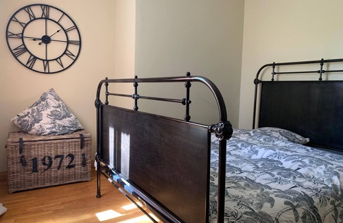 A living room, a dining area, a BBQ grill, and air conditioning are featured at this 4-bedroom, 1.5-bathroom rental. Bathroom amenities include a hair dryer and towels. The kitchen is equipped with an oven, a stovetop, and a refrigerator, as well as a coffee maker, an electric kettle, and an ice maker. And there is a laundromat nearby so you can pack a bit lighter.