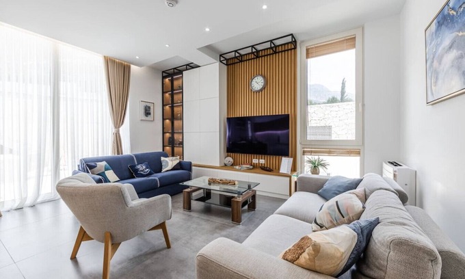 Step into your modern seafront escape, where sleek design meets natural beauty. This 3-bedroom, 2-bath villa features spacious interiors, full AC, stylish furnishings, and floor-to-ceiling windows that open to a private patio - perfect for morning coffee or sunset cocktails. Nestled in nature and surrounded by calm, it’s your private oasis in the heart of the Albanian Riviera.
