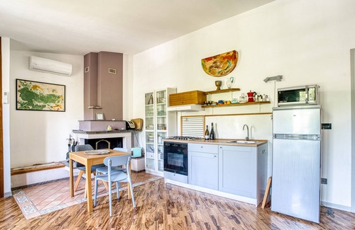 The house is on two floors, can accommodate up to 4 people, has a fully equipped kitchen, two bathrooms, a master bedroom and open, intimate spaces for resting, reading, thinking.