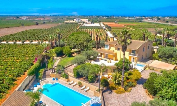 Villa with pool, of 1000 m2 in marsala with 5 bedrooms and 7 baths for 10 persons .
