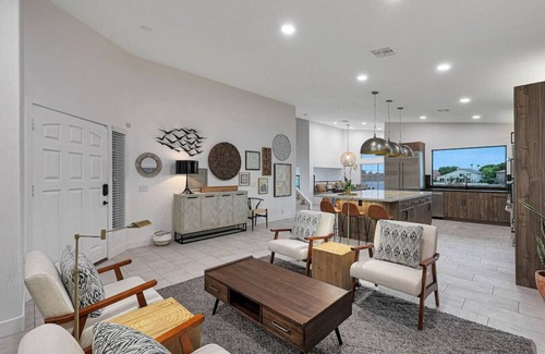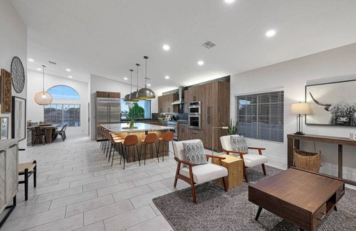 Villa del Sol is our newest addition to the Sunkasa portfolio in Arrowhead Lakes. Beautifully renovated from top to bottom, this desert modern masterpiece is perfectly suited for your sunny getaway. No detail has been spared or overlooked! Cook culinary masterpieces in the brand new chef's kitchen with massive 10 foot island! Bask in the sun in the heated outdoor pool with tanning shelf and in-pool table for 10 before retiring after a long day to the luxurious hotel-quality beds and linens!