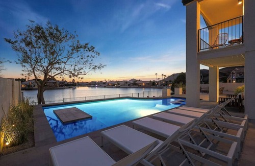 - Desert Lakehouse Oasis:Heated pool, heated spa, & pontoon boat use included.