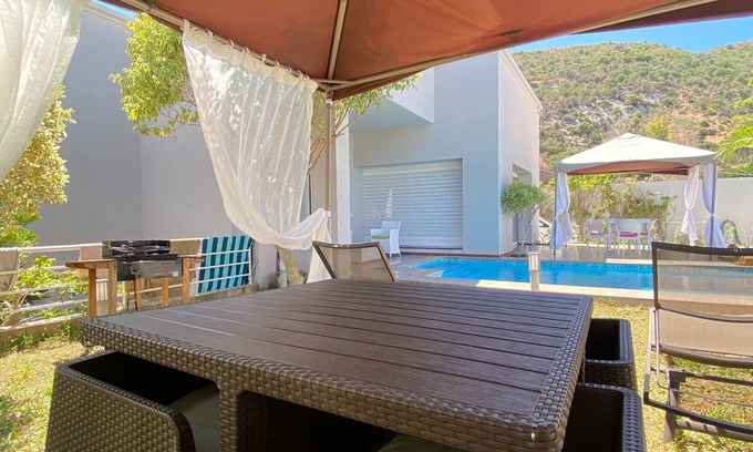 Villa Deluxe, Poolside, Mountain views, 3Bed, Sitting and dining indoor/outdoor | Villa in Bizerte