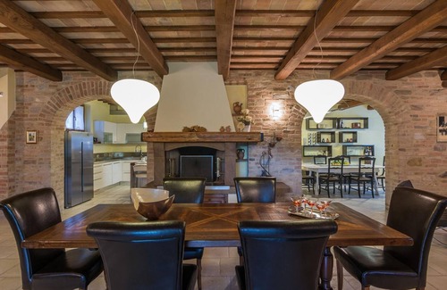 Villa Design is an elegant private villa with pool in Le Marche. The property is immersed in a green landscape overlooking the suggestive town of Pergola which is only few km distant. This accommodation is the perfect solution for relaxing holidays in close contact with nature, while being at a very short distance from main services and amenities. The villa preserves its antique rural architecture combined with a refined modern taste given by the selected comfortable furniture. The property is entirely gated and includes a large and well groomed garden with salt water pool with Roman stairs and adjoining gazebo with panoramic view, perfect to take shelter during summer days. Guests can also benefit of a comfortable porch equipped with tables, chairs and sofas to eat all together and relax. Just a short walk from the villa, there’s a charming agriturismo of the same owner, where, by reservation from Friday to Sunday, you can enjoy the authentic flavors of the local culinary tradition.
