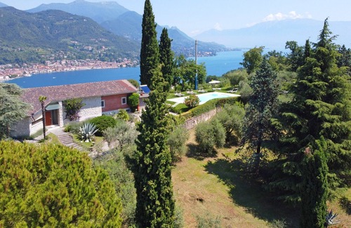 Villa Desire is a gorgeous villa perched on the hillside over the gulf of Salo, with stunning lake views. The villa has a large private pool (11m x 6m) immersed in a 7000 sqm private park of olive groves, meadows and woods. The villa was designed to enjoy the view of the Gulf of Salò, has a large living room with high wooden ceilings and windows with breathtaking views, three of the bedrooms have windows with lake views, new swimming pool surrounded by a well-kept garden. The villa has been completely renovated recently and has new systems and accessories, new bathrooms, a new kitchen, air conditioning in the main floor bedrooms and beautiful antiques selected in combination with modern comfort.