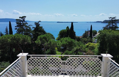 Villa Diamante is a Liberty Villa located between Salò and Gardone Riviera, just a few metres from Lake Garda. The property is unique in its kind, as it preserves the elegant original architectural lines of the early 20th century, enriched by unique and refined ornamental details.The interiors of the villa have been renovated with meticulous attention to detail, preserving the original character of the structure. The villa is spread over four levels and is equipped with an internal lift. On the first floor there is the bright living area which includes a large living room with a fireplace, a dining room with a lake view and a modern kitchen equipped with all comforts and a bedroom with a private bathroom. On the second floor there are the three bedrooms, all with bathroom with bathtub and balcony. On the third floor, finally, the attic with a bathroom that houses a double bedroom and a living area. From here you can access the panoramic solarium terrace with a splendid lake view. In the basement you can access the laundry room, the bathroom and the spa and wellness area, equipped with a sauna, Turkish bath and hydromassage tub. On the same level you can also find the fully equipped gym and the recreation area with a mini bar and a billiard table from which you can directly access the pool. From the beautifully kept garden it is possible to access the outdoor dining area with gazebo, table, barbecue and outdoor kitchen with hydromassage tub.The garage has 4 parking spaces. This Liberty villa, a true diamond on Lake Garda, with its privileged position and its timeless charm, represents a unique opportunity to live an unparalleled experience, in one of the most evocative places in Italy.If not directly charged in the booking, the tourist tax (per guest) and a security deposit of €500 will be required upon arrivalCIN IT017170B4KVAQZDFK