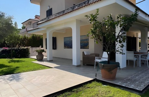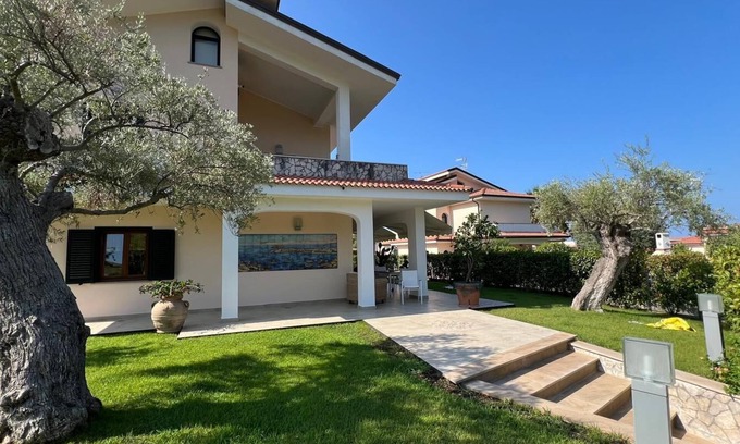 Located in Diamante, Villa Diamante offers spacious accommodation of 250 sqm, ideal for up to 6 guests. The villa features 3 comfortable bedrooms and 4 bathrooms, one of which does not have a shower. Your private kitchen is fully equipped, and you will find air conditioning, Wi-Fi suitable for video calls, TV, washing machine, private whirlpool, and barbecue. The mountain and sea views make your stay even more enjoyable.