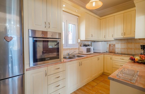 The property is located in the hinterland at just 8 km from the sea and from the village of Sidari. Thanks to its 5 bedrooms and its common areas, the house can sleep up to 9 guests. The interiors have been tastely furnished and equipped with any kind of comfort to guarantee practicality and tranquility to the guests who stay there.