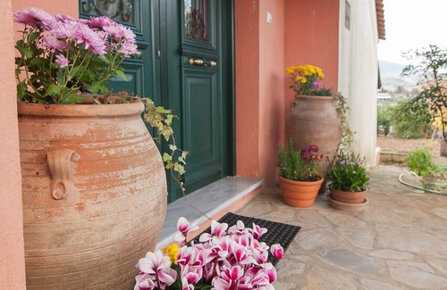 At the back of the house a vegetable garden offers fresh organic vegetables to the owners and tenants. Most of them come from authentic seeds. Villa Dioni hosts 4 animals in her garden, Herra a small cute and friendly dog and three cats.