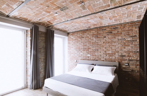 The dwelling can host up to 10 people, there are 3 bedrooms on the first floor with a sofa bed in the living area and one bedroom on the ground floor with a sofa bed in the living area. Welcoming in the rational lines that characterize the exterior, the house inside, with a surface of 70 square meters, offers a very warm and intimate environment thanks to the vaulted ceilings in terracotta tiles, the exposed brick walls such as the wooden beams, modern and functional furnishings.
