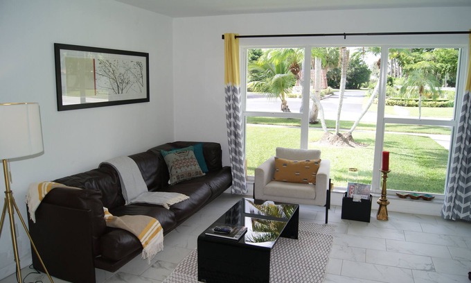 Fully renovated, Villa Domitiana II is situated in the desired Sandpiper neighborhood, a few minutes' walk of Club Med. The property’s interior was designed in a contemporary style, with a well-stocked kitchen, both bathrooms have walk-in showers ,while the master bath has double vanities. The master bedroom has a versatile space that can be used for remote work or as a vanity mirror angle. Both bedrooms and the living room have a TV. It has perfect access to stores, restaurants, golf clubs, botanical garden, and a quick 15-20 minute drive to the beach. The neighborhood is very quiet and the property has an outdoor video surveillance. Villa Domitiana embraces diversity and ecology like basic mindset, children and well behaved pets are welcome.