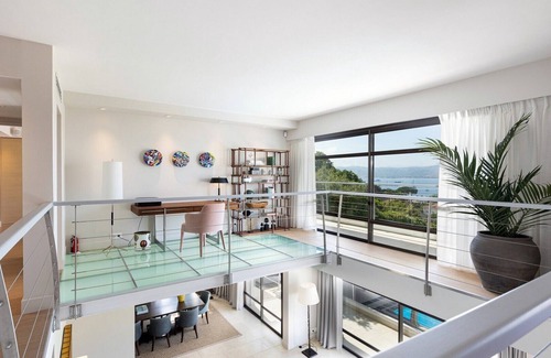 Villa du Cap combines a contemporary, modernist living space decorated throughout with exquisite art, with intimate private rooms laid out over three floors and overlooking the Cap d'Antibes.