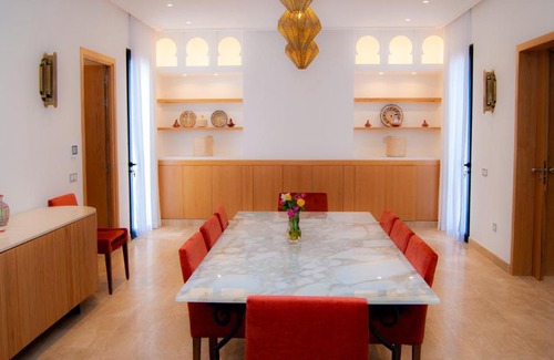 Situated in Marrakech, 35 km from Bahia Palace and 36 km from The Orientalist Museum of Marrakech, Villa Eden Marrakech offers a garden and air conditioning. This property offers a private pool, free WiFi and free private parking. The villa with a terrace and mountain views has 6 bedrooms, a living room, a flat-screen TV, an equipped kitchen with a dishwasher and an oven, and 6 bathrooms with a walk-in shower. The villa offers a continental or halal breakfast. Majorelle Gardens is 36 km from Villa Eden Marrakech, while Boucharouite Museum is 36 km from the property. The nearest airport is Marrakech-Menara Airport, 41 km from the accommodation.
