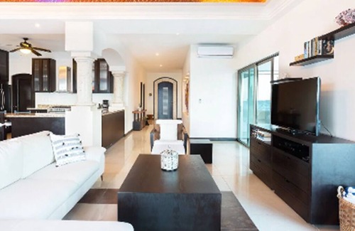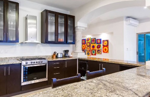 Villa El Dorado has unique amenities such as a freshwater swimming pool overlooking the beach, a gourmet kitchen fully equipped for on-site cooking, a grill, and four private bedrooms with en suite bathrooms. Two master suites also have ocean view with direct access to the pool and the beach. All of the bedrooms are equipped with large closets, air condition, ceiling fan and flat screen TV.