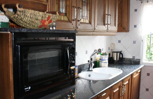 It is a very spacious house on one floor, on top of a small hill, so that beautiful views of the whole valley are dominated, with all the comforts, furnished in rustic style and mattresses of great quality. It has, in addition to 5 full bedrooms, fully equipped kitchen (combi fridge, microwave, oven, induction hob, toaster, etc. etc) living room with large fireplace, large flat screen TV and music system, jacuzzi area for 5 people, glazed and movable and with independent bathroom, pool 12 meters long, bar with: wood oven, bar with beer tap and paellas, plus another electric plate and another refrigerator; game room: with ping pong, football, billiards, music, karaoke, games for children: large blackboard, table and chairs, kitchenette, etc. Being located in a high, in August always runs a small breeze and is not hot. It is usually inhabited on weekends, so it is very careful in the details, both decoration and comfort. Fully equipped, both household goods and bedding. It has no stairs, so it is also ideal for small (for safety) as for people with mobility problems.