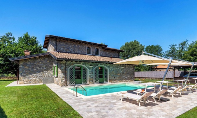 Set in the heart of Lunigiana, in the midst of green countryside surrounded by the Apuan Alps that envelop it as if protecting it, is Villa Elsa. A characteristic rural house in stone, skilfully restored in respect of the characteristics of the time, using typical materials such as stone, marble and terracotta without however renouncing modern comforts. The property includes a portico with a dining area and a swimming pool with relaxation areas. Its position, surrounded by greenery, in Filetto just a few minutes from the town of Villafranca in Lunigiana, guarantees maximum privacy but, at the same time, allows you to visit many towns such as Carrara, Cinque Terre, Pontremoli, Lucca, Pisa and Florence, all easily and quickly reachable.