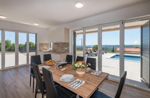 Offering a garden, Villa Ema, a beautiful villa with a wonderful view of the sea provides accommodations in Stanišovi. This property offers a private pool, free Wifi, and free private parking. Pula Arena is 28 miles away and Morosini-Grimani Castle is 20 miles from the vacation home. Providing a terrace with sea views, this vacation home also offers a satellite flat-screen TV, a well-equipped kitchen with a dishwasher, an oven, and a microwave, as well as 5 bathrooms with a shower and a hair dryer. The property has an outdoor dining area. Guests can make the most of the warm weather with the property's barbecue facilities. Pazin Castle is 25 miles from the vacation home, while Dvigrad Castle is 26 miles away. Pula Airport is 26 miles from the property.