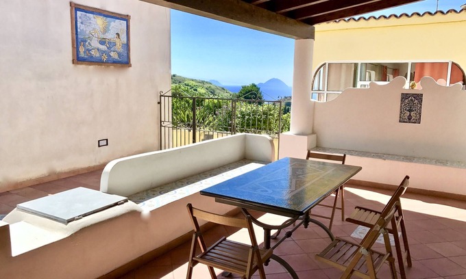 - Strongyle-Aeolian-style cottage on the beach with beautiful terrace and W-fi