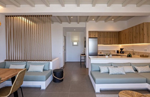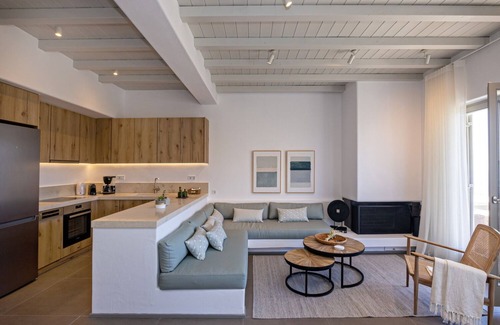 Villa Erato is decorated in a contemporary style, with boho touches and details. All furniture is carefully selected to create a beautiful atmosphere so that guests can leave behind their daily routine and live moments of calm and pleasure on their vacation in Tinos.