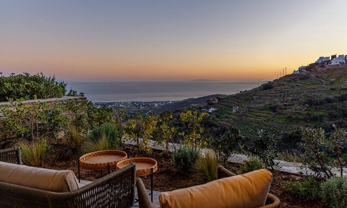 Last but not least ,Villa Erato offers spacious views at the tranquil valley of Triantaros and the Aegean Sea.