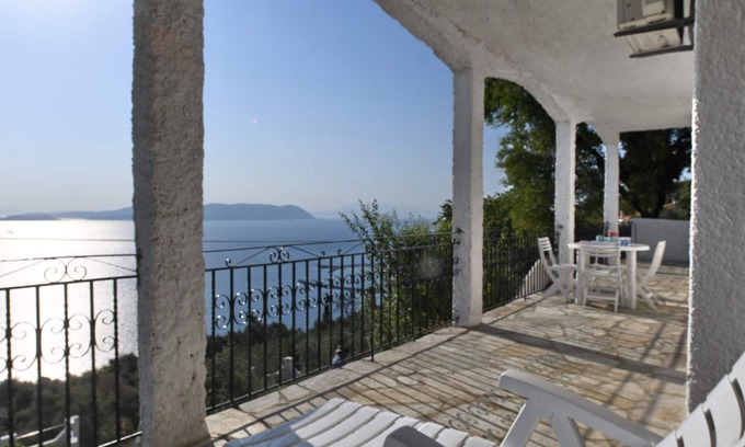 Villa Erika is part of the private panoramic Complex SECRET SPORADES. It has a large covered panoramic veranda on three sides and can sleep inside, thanks to its convertible living, up to a max. of 6 people. Inside you will find convertible living room, bedroom and bathroom with shower. All the main rooms have direct access to the panoramic veranda. From the veranda access to the outdoor covered kitchen with wood BBQ and pizza oven, sink and gas cooker.