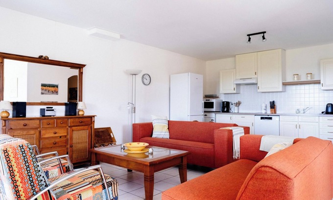 The kitchen is equipped with a stovetop, a refrigerator, and a dishwasher, as well as a coffee maker, an electric kettle, and a microwave. And there's access to laundry facilities, so you can even pack a bit lighter. Other amenities include a living room, an ironing board, and housekeeping.