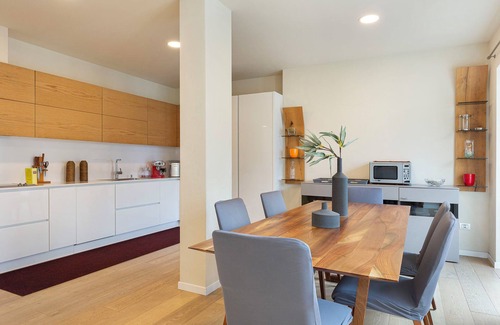 Spanning 380 m² across three floors, Villa Felicity is designed for comfort and elegance, with a lift connecting the levels for easy access. It accommodates up to 10 guests in five spacious double bedrooms, each with its own en-suite bathroom. Two additional guests can be accommodated on sofa beds in the larger bedrooms. Extra-long beds, premium linens, and floor-to-ceiling windows provide a luxurious touch, while offering panoramic views of the shimmering lake and majestic mountains.