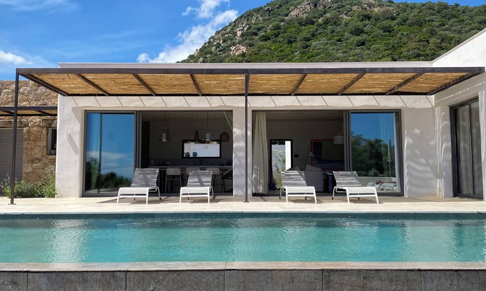 - Exclusive granite villa DIRECTLY on the beach, sea and mountain panorama, pool