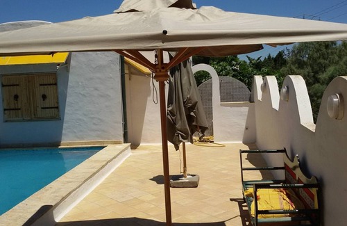 a large villa of 400 sq.m built equipped with a Moorish style objects very large values and a swimming pool on the terrace with views over the orange grove. it is located at "Cap Bon" near a beach resort. this region is one of the milder regions of Tunisia in terms of climate, ideal to spend holidays with family or only for '' just married ''.