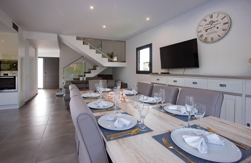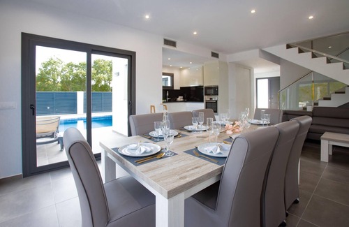 This comfortable, newly built 150 m² villa overlooks the garden and pool.