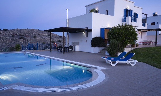 Best-rates for the Pefkos villa starts from $359 per night with includes Parking, TV, Ocean View, Oceanfront, Security/Safety, Wellness Facilities, Child Friendly, Air Conditioner, Pool, Private Pool, Fireplace/Heating, Internet, Kitchen, View, Balcony/Terrace, Sports/Activities, Entertainment, Barbecue/Outdoor Cooking, Bedding/Linens, Laundry with all other amenities. Perfect for Weddings is committed to ensuring every guest experiences a comfortable and extraordinary stay, whether planning a romantic getaway, a honeymoon, a pet-friendly stay, or celebrating with the entire wedding party.
